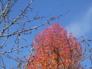 Mais quelle forêt accueillante, mousseuse, douillette ! Nous sentons bien qu’elle se prépare à l’hiver et nous offre ses parfums boisés réchauffés par le timide rayon de soleil. Le bruissement sous nos pieds des feuillages éparses, châtaigniers, chênes, hêtres aux teintes mordorées. Et le papotage de chacune et chacun, tranquilles, heureux de partager cette douceur et une rencontre avec un naturaliste improbable et hors du temps quoique fort sympathique.